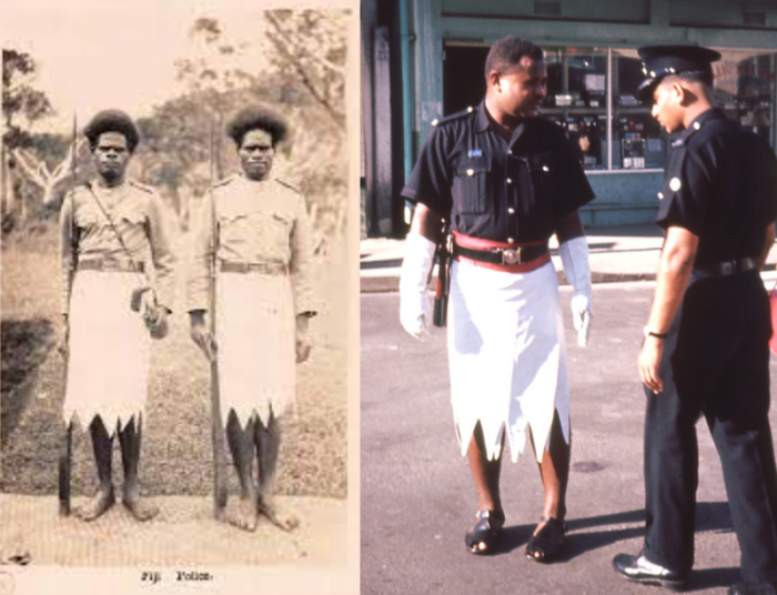 В 1874 году Фиджи официально отошли Великобритании. В то же время на Фиджи появились английские законы, в моду была введена одежда в западном стиле и построены каменные дома. Коренное население должно было подчиняться местным законам и начало носить европейскую одежду. В том числе военную и полицейскую форму.