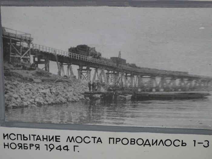 При освобождении Крыма на берегу Керченского пролива обнаружили большие запасы металлоконструкций и оборудования, завезенного немцами и оставленного при отступлении. Грех было не воспользоваться таким богатством — приняли решение начать строительство железнодорожного моста через пролив, запланированное еще до войны. Этот мост был крайне нужен наступающей армии, поэтому строители спешили. Первая свая была забита 24 апреля 1944 г., а 3 ноября 1944-го по мосту уже прошел первый поезд от станции Крым до станции Кавказ. Принимавшая объект комиссия отметила, что «коллектив… поборол все трудности и выполнил работы первой очереди за 150 дней, добившись темпа работ более 30 м моста в сутки». Работы второй очереди, предполагавшие, в частности, замену временных деревянных опор на постоянные металлические, а также сооружение 116 ледорезов, должны были быть закончены к 1 января 1945 года.