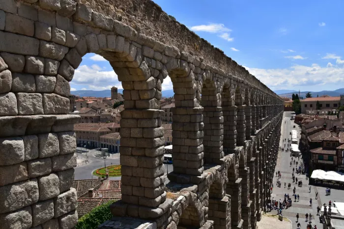 Акведук в испанском городе Сеговия является классическим примером римской архитектуры. Акведук был построен в 1 веке нашей эры для подачи воды из реки Фрио, и он выполнял эту функцию в той или иной форме в течение последних 2000 лет. Это тем более впечатляет, когда вы понимаете, что этот акведук был построен без единой капли раствора.