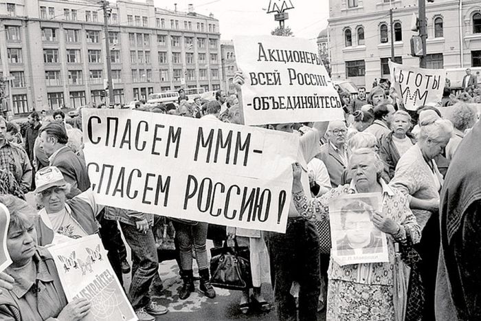 Обманутые в очередной раз люди первое время митинговали: кто-то "Верните деньги", кто-то "Верните Мавроди", однако митингов в духе "Долой правительство" от вкладчиков МММ не было.