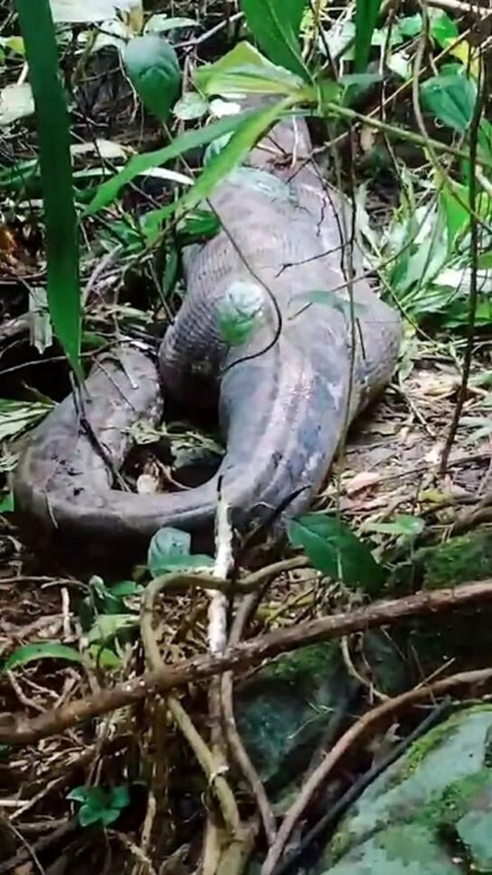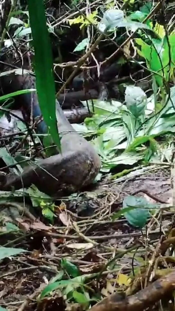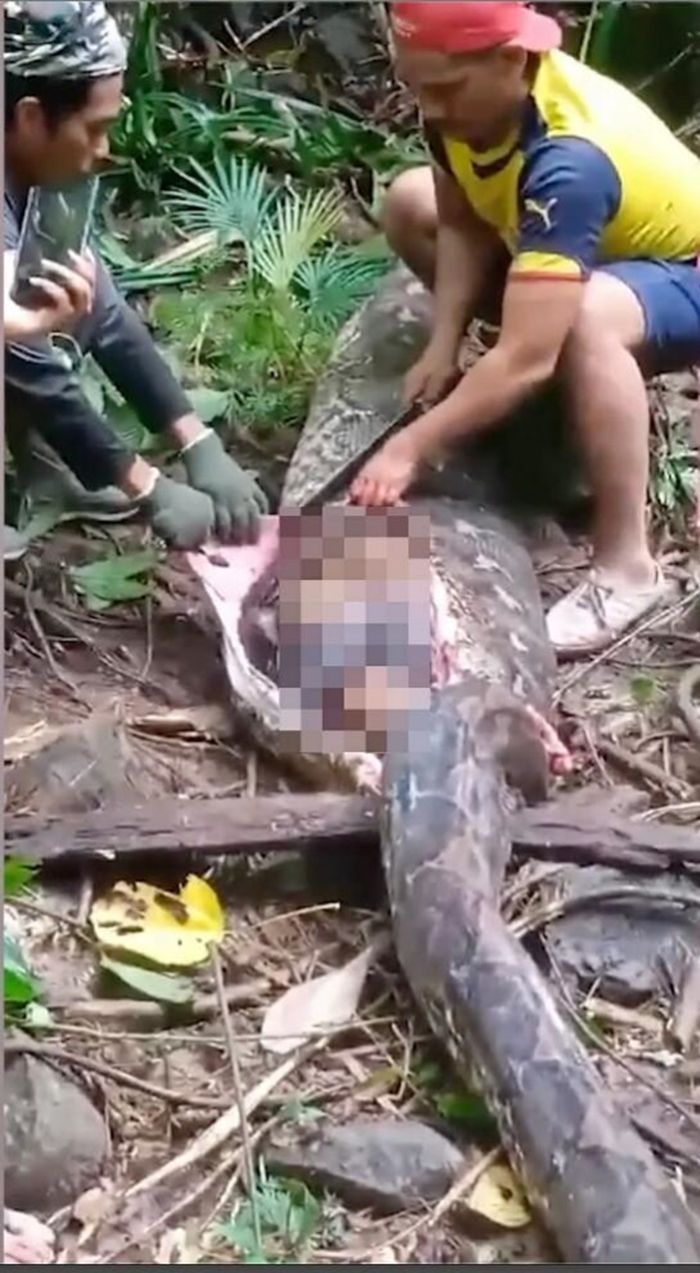 На следующий день они обнаружили гигантского питона длиной 20 футов, распростертого в подлеске, с большой выпуклостью в животе. На видео с места происшествия можно увидеть огромную голову с высунутым из рта языком.