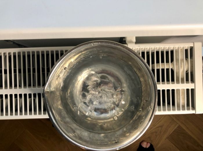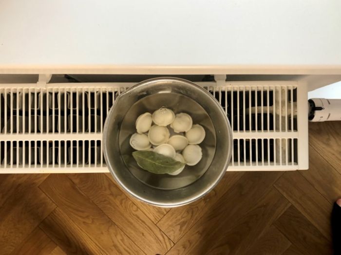 Ставим металлическую ёмкость с 1 литром воды на радиатор и ждём.