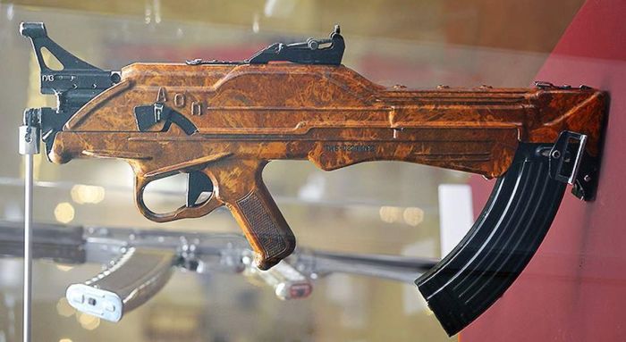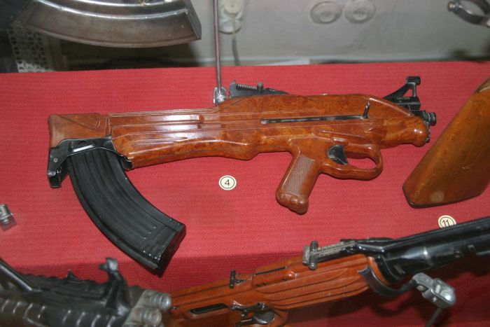 Перед вами экспериментальный автомат ТКБ-022ПМ компоновки булл-пап, который был разработан Германом Коробовым в 1960-х годах в ЦКИБ СОО. Уникальный автомат так и не был принят на вооружение, поскольку пугал своей новизной и необычными конструкторскими решениями военное руководство страны. Благодаря пластиковому корпусу масса автомата составляла 2,6 кг. Его длина составляла 755 мм, при длине ствола - 415 мм. В магазин помещалось 30 патронов калибра 7,62. Скорострельность - 560 выстрелов/мин.