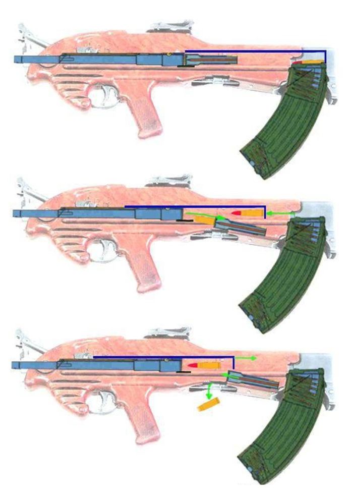 Помимо компактных габаритов автомат ТКБ-022ПМ отличался весьма передовыми на тот момент решениями – кроме пластикового корпуса, выброс стреляных гильз и вывод пороховых газов производился вперед у дульного среза оружия, что обеспечивало стрельбу как с правого, так и с левого плеча.