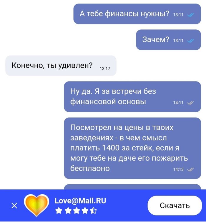 Пишу ей, что в такие места не хожу, предложил на 1500 взять мясо, вино в Красно Белом по 199 рублей за бутылку, бутылку водки и поехать ко мне на дачу.