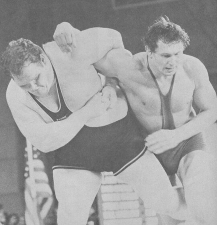 В ходе поединка мне удалось использовать его массу себе на пользу: когда Тейлор бросился на меня, я его подсек. Летим на ковер, а в голове одна мысль – выдернуть руку и ногу из-под соперника, иначе конец. Упали, весь помост зашатался, Крис ищет, где я... А я уже на нем, схватил за предплечья и переворачиваю! Весь зал скандировал: «Медведь! Медведь!»