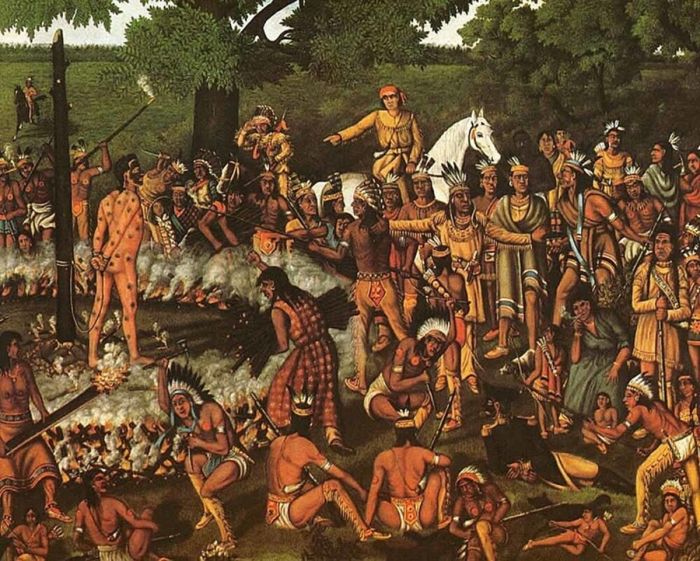 А его вместе с братьями взяли в плен - мальчиков разделили и отправили в несколько племён. Наш герой оказался у ирокезов и поначалу ему там как следует доставалось - парня частенько били. А потом он освоился и мучения прекратились. К тому же он понял, что ирокезы не имеют никакого отношения к убийству его матери и отчима, поэтому успокоился и даже подружился со сверстниками из племени.