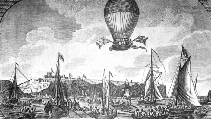 Перелет Жан-Пьера Франсуа Бланшара через Ла-Манш в 1785 году.