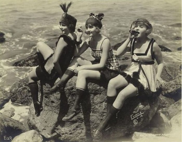 Закатанные ниже колен чулки — бунтарская мода 1920-х! Девушки жаждали свободы, не желая носить неудобные пояса с подвязками и париться в плотных чулках в летнюю жару. Закатанные выше колена чулки стали модным трендом, а закатанные ниже и открывающие голые коленки — бунтом и заявкой на слом системы. Вот она, непристойная мода столетней давности!