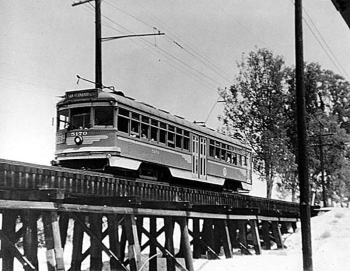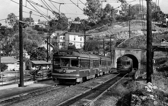 К началу XX века в Лос-Анджелесе существовала одна из самых больших трамвайных сетей в мире. Ее совладельцами являлись компании Pacific Electric Railway и Los Angeles Railway. В скором времени, однако, основным видом транспорта в городе стал автомобильный, и с 30-х гг. трамвайные линии постепенно стали исчезать; последние из них были закрыты в 1963 году.
