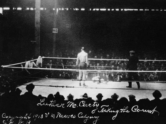 С кожаными перчатками и решимостью в глазах Лютер Маккарти совершил стремительный взлет в боксе. Когда Лютер достиг совершеннолетия, он мог похвастаться ростом 1,95 метра, благодаря чему мог нанести сокрушительный левый хук с дальностью действия в два метра. Днем 7 января 1911 года, в возрасте 18 лет, он дебютировал в профессиональном бою против Уотта Адамса, одержав впечатляющую победу нокаутом всего за два раунда. В том же году Лютер провел на ринге еще семь боев. Первый из них, против легенды Джо Грима, известного своей стальной челюстью, завершился вничью. Тот бой был настоящим зрелищем: молодой боксер провел большую часть боя, пытаясь победить «самого сильного человека на Земле». Из остальных шести боев только один не закончился победой. Лютер Маккарти был настоящей машиной для нокаутов.