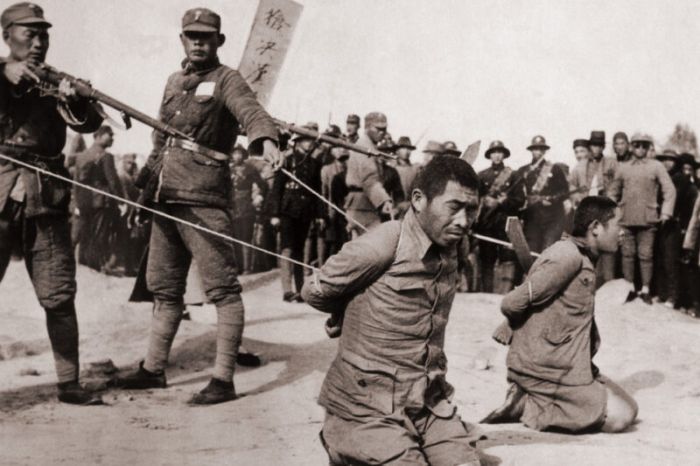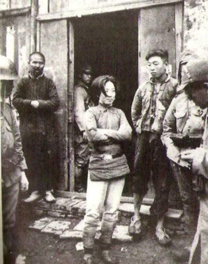 На этой фотографии приговоренная к смерти девушка и солдаты, которым предстоит через несколько минут ее убить. Имя и история жизни этой девушки хорошо известна. Это китайская партизанка Чэн Бенхуа, защищавшая свою землю от японских оккупантов.