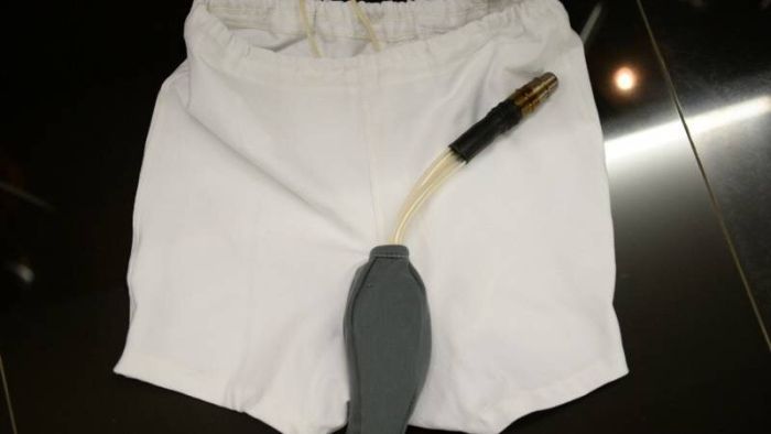 Портативный унитаз при его переключении, конечно же не появляется. Всё гораздо проще, но немного специфично. Тумблер работает в паре со специальными трусами с приёмником жидкости ПЖ-1. Их особенность заключается в наличии шланга с перепускным клапаном — он соединён с бортовой системой ассенизации.