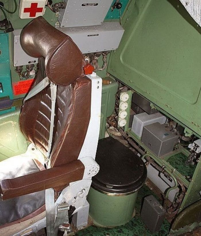 А всем, кого пугает этакий пылесос в пикантной зоне, добро пожаловать в дальнюю авиацию. Тут для экипажа ни много ни мало настоящие унитазы, почти как дома. Вот так, например, выглядит "гальюн" в бомбардировщике-ракетоносце Ту-95.