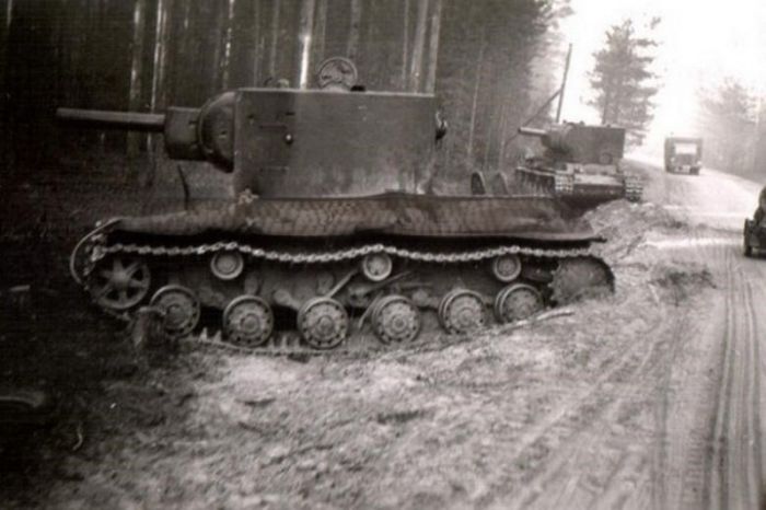 Учитывая немецкое доминирование в воздухе, машины могли пытаться уйти от авианалета. Либо у них просто закончилось топливо. Не знаю, нашли ли что-то немцы в баках, но данная версия выглядит вполне убедительной. Дивизия только что принимала участие в тяжелейших двухдневных боях. Но по причине отсутствия помощи ей пришлось отступить. Банальное отсутствие «горючки» стало причиной потери огромного числа военной техники в начале Великой Отечественной войны. Эти монстры, скорее всего, не стали исключением.