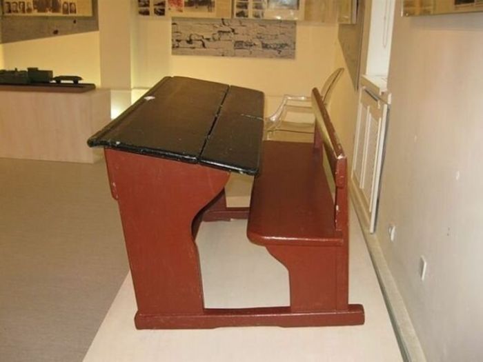 С медицинской точки зрения это лучшая конструкция школьной парты. Учтены даже такие элементы, как перекладина для размещения ног и вырез в боковой стенке для того, чтобы при посадке ребенок не бился коленями об стол. Сидеть за ним можно было только прямо, ссутулиться было невозможно: ровная спинка не давала позвоночнику «уехать» назад.