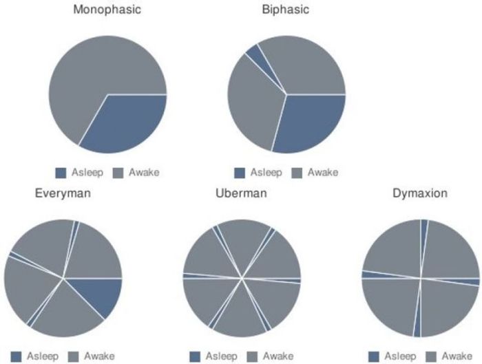 3) Everyman – это компромиссный режим для тех, кто не может спать через каждые 4 часа. В этом режиме есть 2 варианта:
