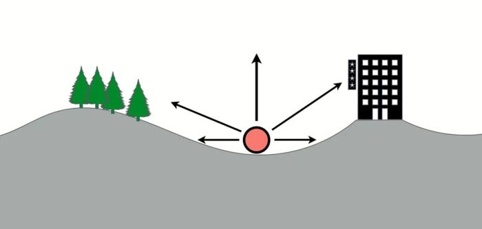 Именно поэтому лампочки мы обычно вешаем под потолком. Так освещение работает намного лучше. То же самое происходит и при атомном взрыве. Если произвести его у земли, то эффект получится слабым, т.к. излучение не сможет нормально распространятся: из-за зданий, лесов, да даже рельефа местности.