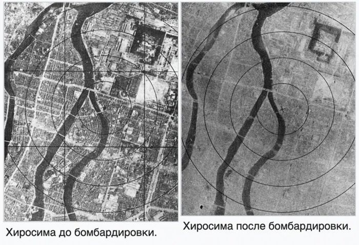 Да и взрывная волна с большой высоты накроет бОльшую площадь. Да, одной большой воронки не образуется, но зато взрывная волна как утюг проедется по целому городу. Вот, например, как выглядела Хиросима до и после взрыва: