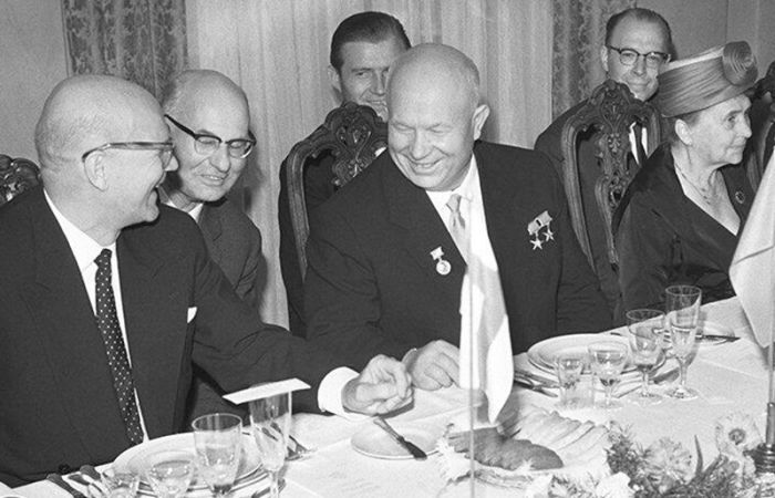 Однако советские люди отказывались покупать кальмаров. Скользкие непонятные тушки не вызывали аппетита — они смотрелись на прилавке настолько странно, что даже не считались экзотикой. Хозяйки не понимали, как их готовить. С консервированными кальмарами было проще — они уже были готовыми к употреблению (мясо было мягким). Но и консервы разбирали неохотно, несмотря на их разнообразие. На полках можно было найти «пирамиды» из консервных банок, на которых было напечатано: «Кальмар фаршированный с маслом», «Кальмар натуральный без добавок», «Гуляш из кальмара с мидиями и трепангом», «Кальмар копченый».  Никита Хрущев