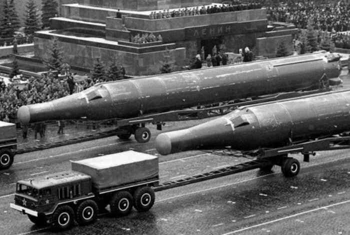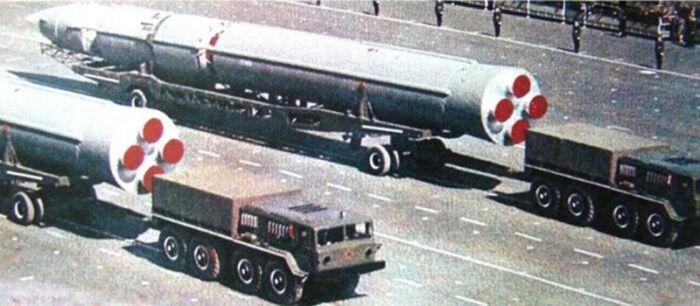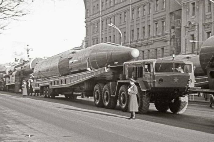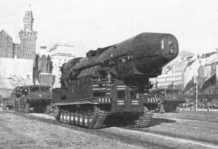 Пожалуй, одна из самых ярких и известных участниц так называемого советского «ракетного блефа». Разрабатывалась ГР-1 в начале 1960-х годов. Главной особенностью этой ракеты было то, что она выводила боевую часть на низкую опорную орбиту планеты вместо того, чтобы просто забрасывать боеголовку по баллистической траектории. Подобное размещение ядерного оружия на орбите делало его малоуязвимым для систем ПРО, а также серьезно расширяло возможности в вопросах дальности и неожиданности нанесения ударов. Работы над ГР-1 официально свернули в 1964 году на фоне подготовки СССР к заключению договора с США и Великобританией о не размещении ядерного оружия в космосе. Впрочем, подписали договор лишь в 1967. Поэтому с 1965 муляж (иначе не, бывало) ГР-1 несколько раз показывали на парадах. К слову, работа над проектом не прошла зря. Не пошедшая на вооружение ракета дала жизнь целому семейству не менее серьезных изделий советского ВПК.