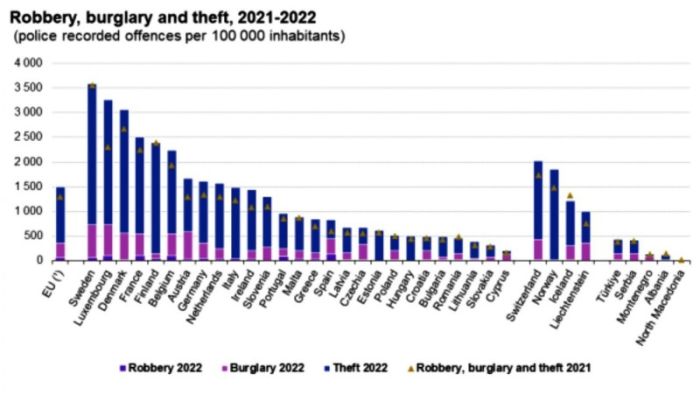 В райской Швеции самый высокий уровень преступности в Европе, связанный с грабежами, кражами со взломом и воровством.