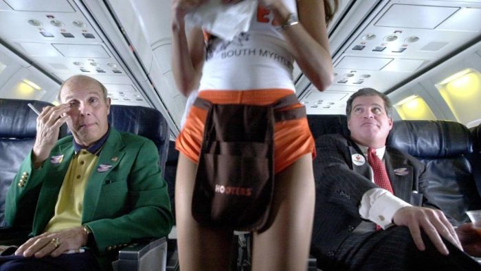 Когда Hooters (знаменитая сеть ресторанов родом из США) решила запустить в 2003 году свою авиакомпанию, она сделала это с размахом —помимо стандартных стюардесс на борту пассажиров встречали две черлидерши в коротеньких шортах и топиках.