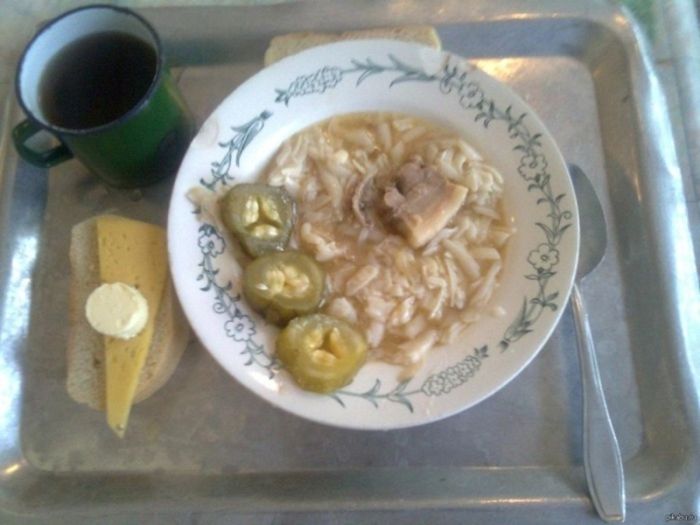 Во многих армейских столовых советского и послесоветского периода мясо – это совершенно отдельная тема. Мясом солдат кормили регулярно. Правда, эстетические и вкусовые качества этого продукта чаще всего оставляли желать лучшего. Связано это было в первую очередь с тем, что для готовки со складов всегда извлекались самые старые запасы. Те самые, что провели в холодильных камерах ни один год, а может быть и 10-20 лет. Как результат, вареное и тушеное мясо в большинстве случае выглядело, пахло и жевалось как кусок резины. Ну а когда мясо забирали себе офицеры, то солдатам давали просто варёное сало с кашей, обильно политое жиром. Конечно, солдат из-за активных физических нагрузок зачастую был голоден настолько, что съедал и это. Вот только удовольствия от службы подобный «деликатес» ни разу не добавлял.
