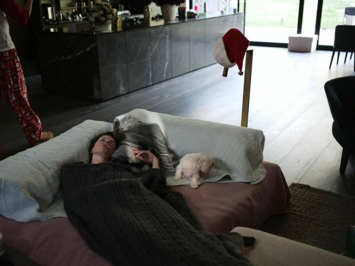 «Я буквально всю ночь не спала и уснула на диване, чтобы не будить детей и попытаться поспать хотя бы час, прежде чем они спустятся вниз», — призналась актриса.