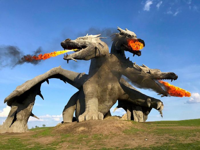 В наше время сказочным злодеем величиной с гору уже никого не напугаешь. В 2016 году Змей Горыныч поселился под Липецком – там установили огромную скульптуру, которая умеет время от времени изрыгать пламя. Горыныч охраняет вход в детский парк развлечений под названием «Кудыкина Гора».