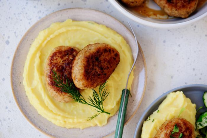 На обед детям часто давали воздушное картофельное пюре. Повара умели так взбивали его с маслом, что оно долго держало форму. К пюре обычно добавляли мясные или рыбные котлеты.