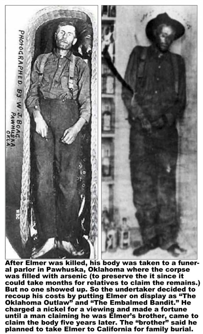 Шериф и помощники получили обещанные 2000 долларов за «поимку» Маккерди, а его труп осел в похоронном бюро ближайшего городка. Так как прав на тело никто не заявил, хозяин конторы распорядился им по своему: забальзамировал и выставлял в витрине как своего рода аттракцион. Чтобы посмотреть на экспонат, нужно было закинуть ему в рот 5 центов. От желающих поглазеть на мертвого бандита не было отбоя. Начали шутить, что бедолага Элмер после смерти заработал гораздо больше денег, чем при жизни.