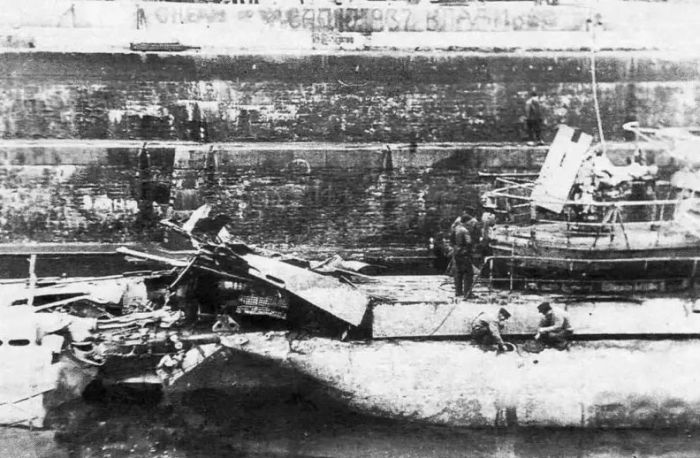 Кормовая часть подлодки: видна пробоина в корпусе.