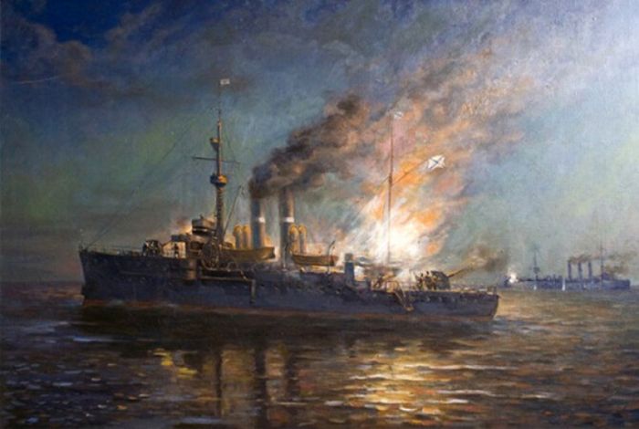 Русские артиллеристы работали виртуозно: и при ослепительном свете ракеты, и в полной темноте матросы с невероятной быстротой подавали патроны, заряжали пушки и стреляли. На палубе скопилась куча стреляных гильз…