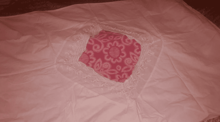 Чтобы сэкономить материал и время на шитье, в центре располагали ромбовидный вырез, как раз на месте шва. Такой своеобразный фасон еще и добавлял оригинальности пододеяльнику.