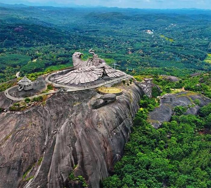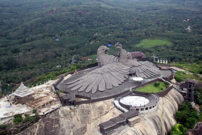Сейчас это новая достопримечательность в Индии — самая большая в мире скульптура птицы: 61 метр в длину, 46 метров в ширину, и 21 – в высоту. Гигантская птица, которая поражает своими размерами и величественностью, имеет свою историю.
