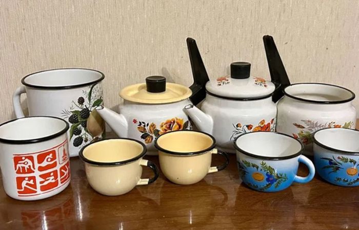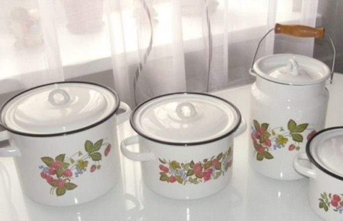 В Советском Союзе эмалированная посуда была в каждой семье без исключения. Она была и модной, и удобной, и доступной по цене. К тому же, этот предмет быта не считался дефицитным товаром. Его выпускали несколько сотен предприятий. Правда, всю посуду изготавливали с черным ободком, но почему?
