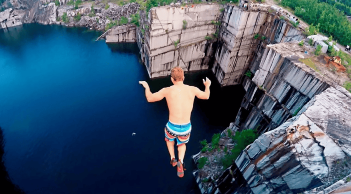 Наверняка вы тысячу раз видели подобные сцены в боевиках: главного героя загоняют к обрыву, где ему, глядя вниз на голубую гладь воды инстинкт подсказывает прыгнуть вниз и спастись от преследователей, что это будет мягкое погружение, ведь вода — жидкость, а не твёрдая поверхность.
