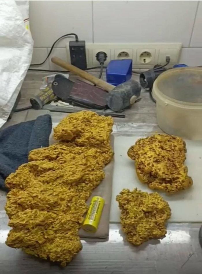 Впрочем, пока достоверно неизвестно точное количество добытого драгоценного металла. Пока следователи располагают только тем, что изъяли при обыске квартиры и машины одного из подозреваемых. Отмечается, что у Галацкевича хранились как самородки и мелкие частицы драгметаллов в виде песка, так и кустарно выплавленные слитки золота массой 14 килограмм. Общая стоимость изъятого эксперты оценили в 325 млн рублей.