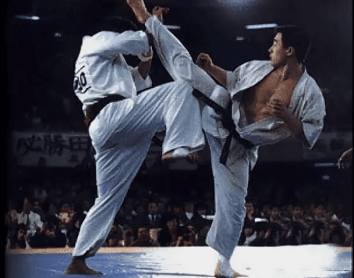 Борьба: Он использует навыки борьбы (тэйкдауны, защита от них, клинч, работа в партере), которые в чистом каратэ отсутствуют.