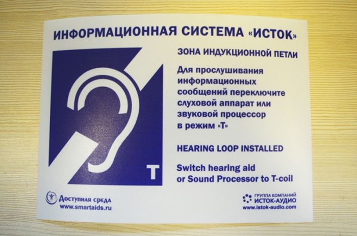 Таким образом увидев знак индукционной петли на станции, человек узнает, что следует перевести свой слуховой из режима «М» в режим «Т».