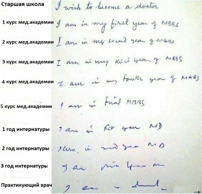 Может показаться загадкой, как другие врачи прекрасно разбирают то, что было написано коллегами. Мало того, даже в аптеках рецепты не вызывают вопросов. Но тут есть рациональные объяснения. Просто привычка разбирать подобный почерк и уверенная ориентация в терминах и определениях. Если для нас это слово незнакомо, то нам и понять его странное написание сложно, а если человек знает что должно быть тут написано, он легко разглядит в "каркакулях" нужное слово.