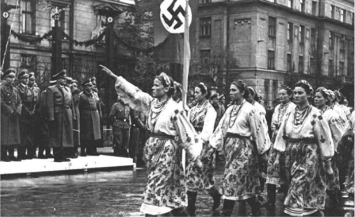 Украинские националисты приветствуют гитлеровцев