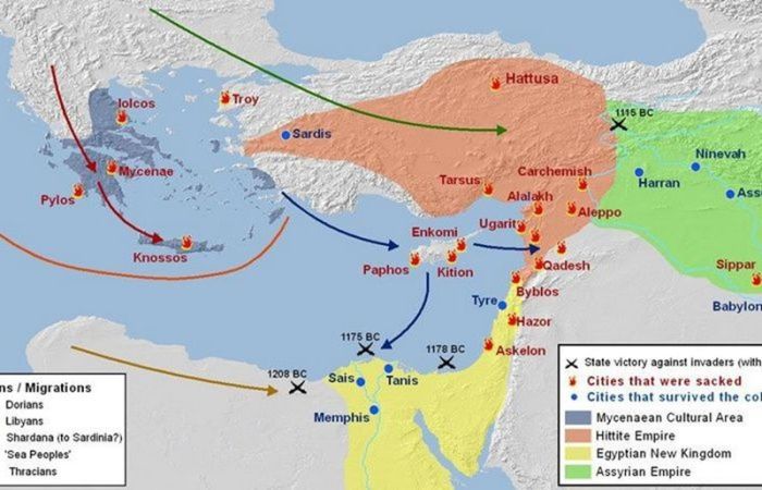 Дело в том, что одной из ключевых причин кризиса бронзового века стало оскудение и исчерпание большинства известных на тот момент источников олова. Это в свою очередь ударило по производству бронзы, а следовательно, и по большинству отраслей хозяйства народов средиземноморского региона. В свою очередь обнаруженные остатки Трои на Гиссарлыке крайне удачно совпадают с одним из главных оловянных торговых маршрутов. Учитывая, что дефицит олова случился не за один день, а нарастал постепенно на протяжении десятилетий, настоящие походы греков на Трою в действительности были серией конфликтов за контроль над оловянной торговлей. Однако в дальнейшем в народной памяти (а затем и пересказе Гомера) те «героические» времена из серии конфликтов слились в одну долгую войну. Справедливости ради, эта версия хотя и весьма популярная, но не единственная трактовка природы троянской войны.