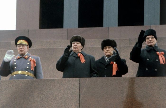 На Центральной трибуне Мавзолея В.И. Ленина во время празднования 64-й годовщины Великой Октябрьской Социалистической революции, 1981