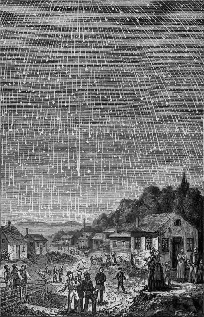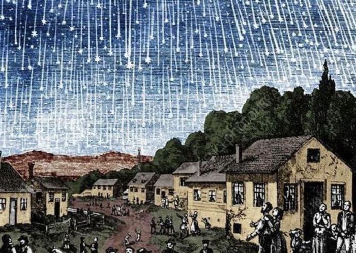 Этот метеорный шторм, получивший название Леониды, стал первым в истории хорошо задокументированным случаем массового метеорного события. Он помог ученым разграничить понятия метеорных потоков, когда в атмосферу попадают мелкие частицы, сгорающие в ней, и метеоритных дождей, когда более крупные объекты достигают поверхности Земли.