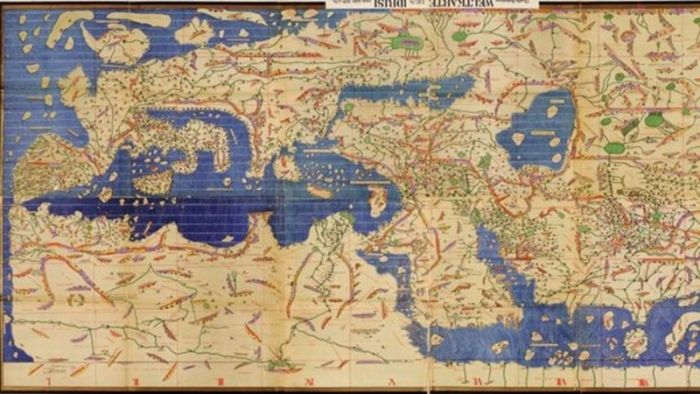 Рожерова карта Мухаммада аль-Идриси (1154 год), перевернутая так, чтобы вверху находился север