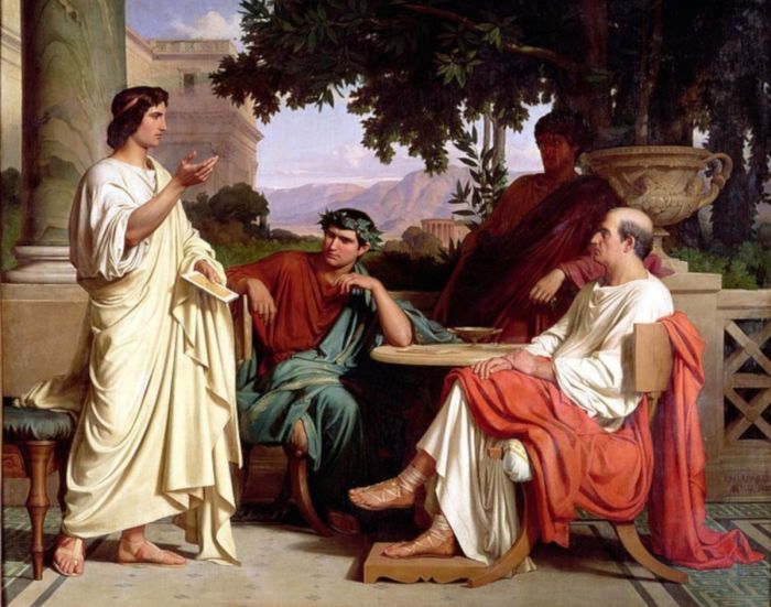 Главными фигурами в этом «кружке Мецената» были трое. Один — Варий Руф, эпик свои сборники стихов — и «Оды», и «Эподы», и «Сатиры», и «Послания». Меценату очень хотелось, чтобы кто-нибудь из его поэтов написал о победах Августа, он предлагал это и Вергилию, и молодому Проперцию, — но Вергилий вместо этого написал «Энеиду», а Проперций — только любовные элегии. И умный Меценат не настаивал. Мы знаем имена и десятка других литераторов, которых можно посчитать членами его кружка, но они нам мало что говорят. Отношения, связывавшие Мецената с ними, в Риме назывались «дружбой», и часто — как с Горацием — это была дружба без всяких кавычек. Но потомки уверенно видели в этой «дружбе» прежде всего покровительство и вещественную помощь. Уже сто лет спустя поэт Марциал, иронически объясняя начинающийся литературный упадок, обмолвился броской строчкой:
