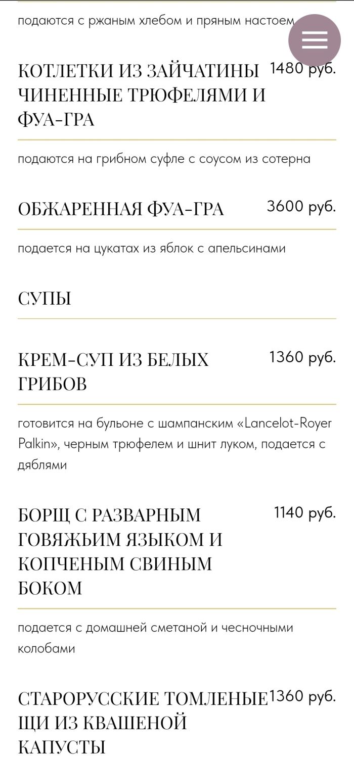 Ресторан "Палкинъ" и сейчас есть на Невском. Вот фрагмент современного меню: