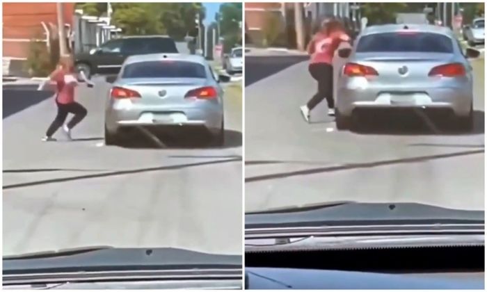 В США произошёл необычный инцидент: водитель уступил настойчивым просьбам своей спарринг‑партнёрши и вышел из машины, чтобы выяснить отношения. Причина конфликта осталась за кадром, но решимость женщины добиться разговора оказалась настолько сильной, что мужчина не смог ей отказать.